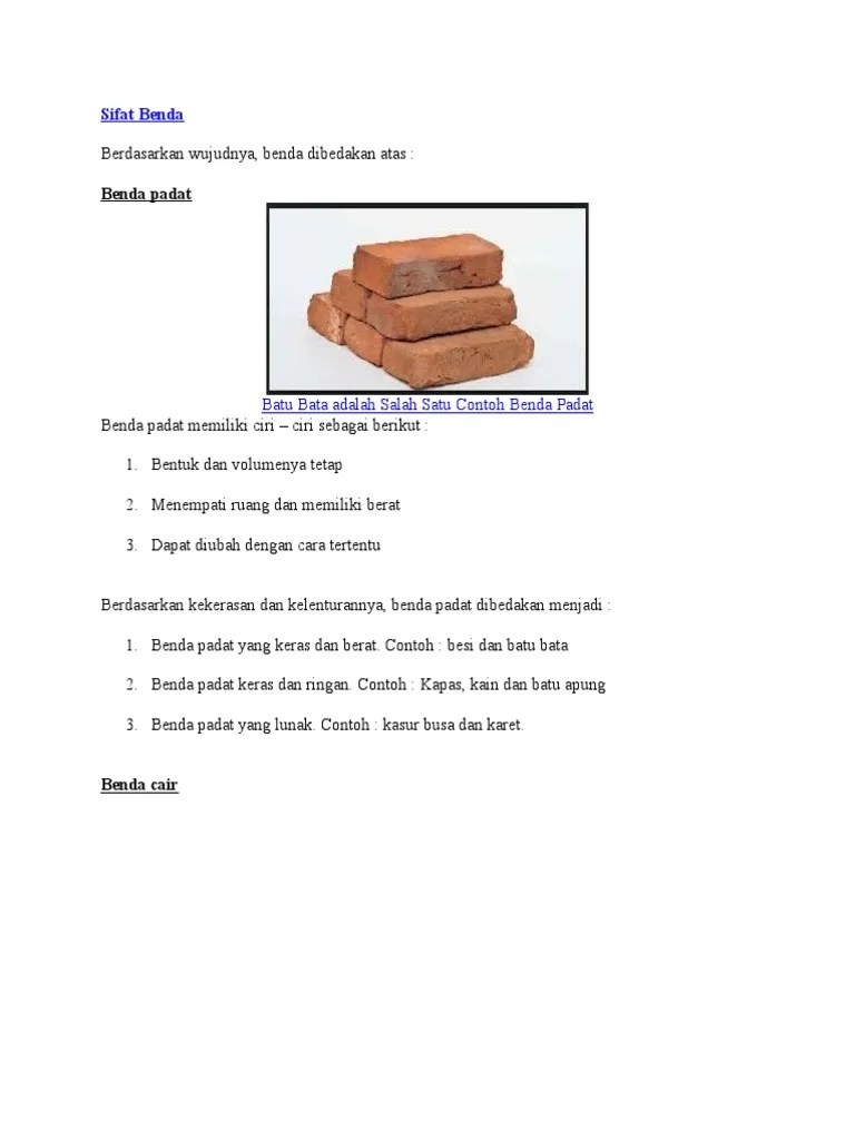 Ciri Ciri Benda Padat Lunak : Benda Dan Sifatnya Materi Soal Dan Pembahasan Lengkap Sd Dan Smp - Contohnya plastisin dan tanah liat.