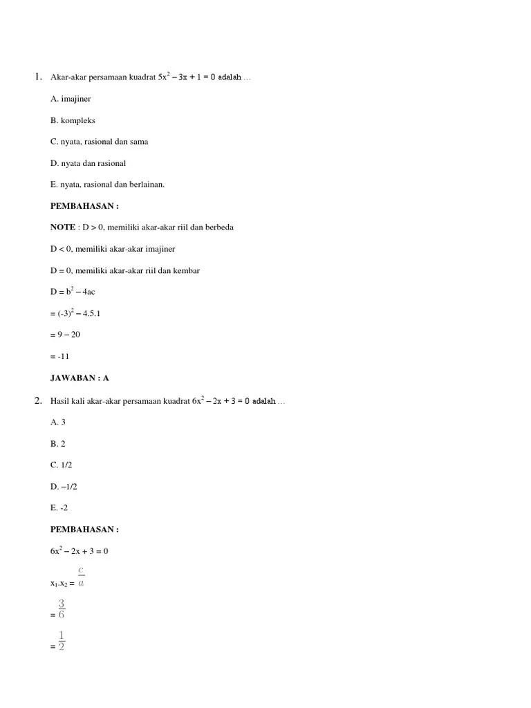 Bagi para siswa smk kelas xi dan sebagai pelengkap bagi guru matematika. Sehingga modul matematika dengan materi persamaan dan fungsi kuadrat ini dapat. Menyelesaikan persamaan kuadrat dengan menggunakan rumus · 2. Persamaan dan fungsi kuadrat · 1. Koefisien a menentukan cekung atau .